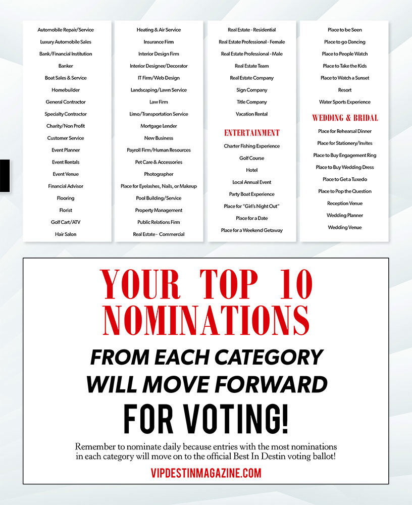 Best In Destin Nominations 2020