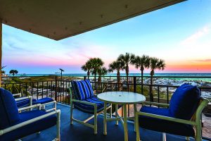 Much like Connie, retired Air Force veteran Steve spends a great deal of time volunteering and works actively with the Special Operations Warrior Foundation and its fundraising efforts in the local area. Coming home to that view, relaxing out on the balcony overlooking the beach and watching the spectacular sunsets is a reward, the perfect way to unwind and reconnect. “We’re blessed to be able to watch the ever-changing Gulf of Mexico and look out at the powder-white sand beach every day,” says Connie. “And the sunsets…there aren’t words!”