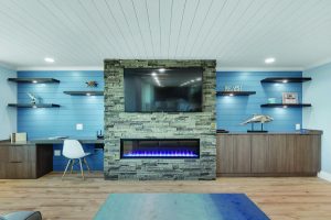 Looking around the space as it is now, with walls painted in a palette of complementary shades of blues, it’s clear that the Connelly’s wanted to inject their home with a coastal feel that was a departure from the norm. Rather than working with the beiges or grays that so often serve as a neutral background for touches here and there of coastally inspired design, they immersed themselves in it, using one very unexpected central feature as the jumping off point for everything else. “I found and fell in love with a slab of quartz from Cambria called Blue Sky, and literally almost everything else in the condo came about as a result of that quartz,” says Connie, an active volunteer for various community organizations and passionate supporter of Alaqua Wildlife Refuge.