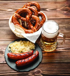 Another reason I love this season of beer is the food pairings. Oktoberfest beers are incredibly compatible with different types of food but are a match made in heaven with German fare like Bavarian soft pretzels with grainy mustard, bratwurst and sauerkraut, Wiener Schnitzel, and basically anything fried. The beer also pairs beautifully with cheese—aged Gouda, Manchego, Gorgonzola. Create a charcuterie board, pair it with an Oktoberfest beer and prepare to have your mind blown. The key to pairing beer with food is that one should not overshadow the other. They’re partners. Flavors can complement or contrast with each other. That is what makes the pairing exciting and elevates your meal from “eating” to “dining.”