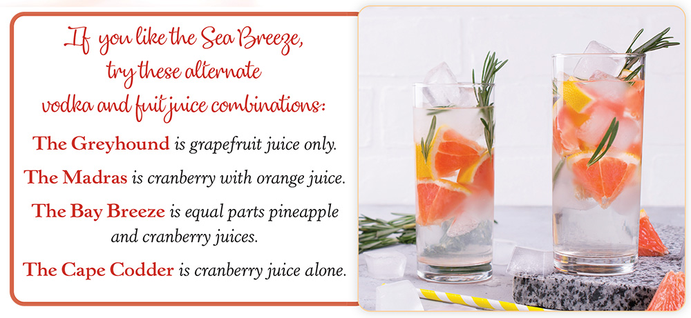 Since the 1920s people have celebrated “Breeze Season,” also known as the long hot days and balmy nights of summer. The need for cool refreshment in the heat of summer brought about the invention of the “Sea Breeze”.